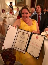 At the 14th Congress of the European Federation of Societies for Microsurgery in Belgrade, she was published in Technical Tips & Tricks for Reconstructive Microsurgery with her chapter “How I do the interpositional vein graft using rat femoral vessels” and was awarded a Certificate of Appreciation for her contribution. The book also included chapters from masters of microsurgery from throughout the world. At the same event, she was named an honorary member of the Serbian Society for Reconstructive Microsurgery, which is a rare honor for a medical professional who doesn’t have an MD.